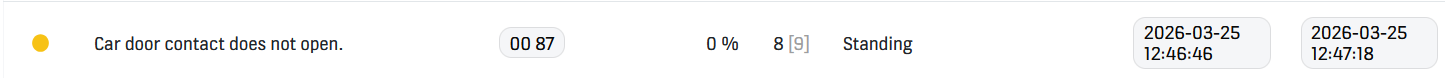 On 2026/03/25 error 87 car door contact 8th floor [9th landing]